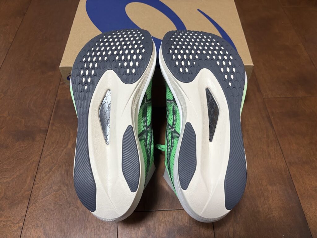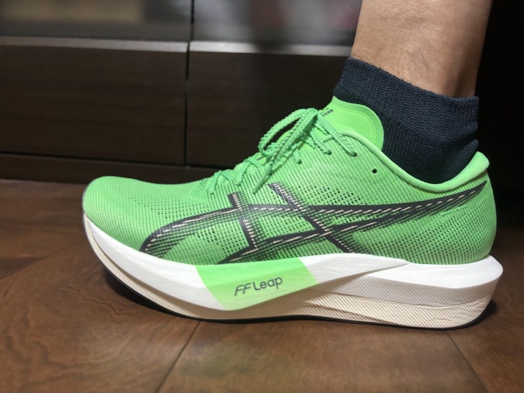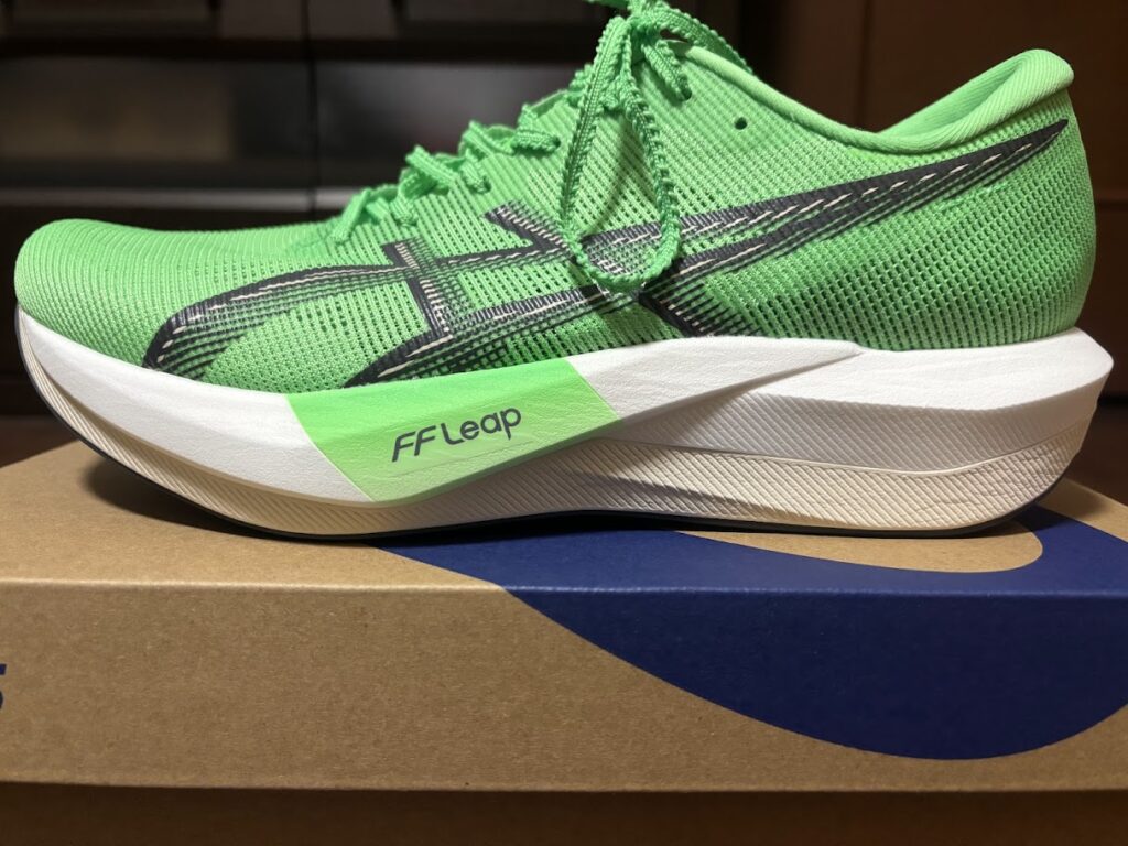 FF LEAPはアシックス史上でも最も「軽量かつ反発性に優れたフォーム材」とされ、着地時のクッション性と、蹴り出し時の反発/推進力の両立を可能にしているようです